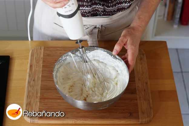 Con ayuda de unas varillas eléctricas, montaremos la crema hasta que nos quede esponjosa.