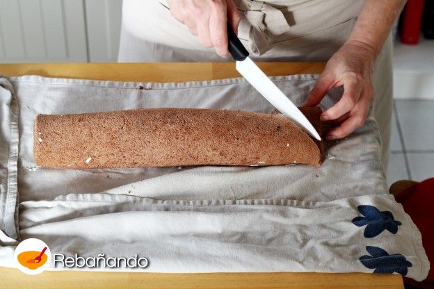 Pasada una hora, será el momento de sacarlo de la nevera y de retirar los extremos del bizcocho.