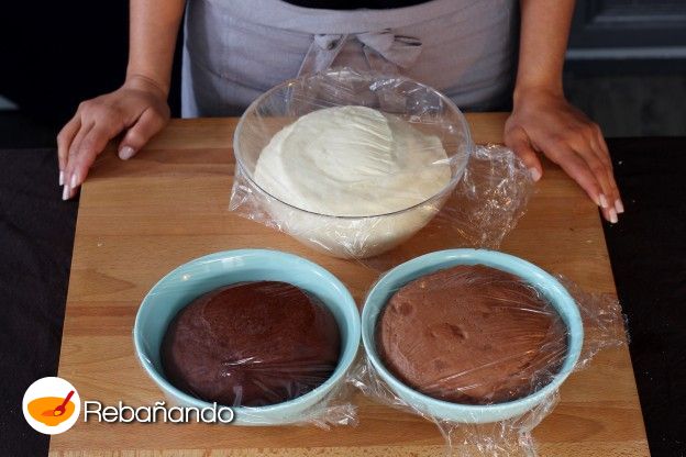 Al resto de la masa agregar los 12 g de cacao y 10 g de leche restantes, trabajar la masa hasta haber integrado los ingredientes, y dejar reposando en un bowl, cubierto con un paño de cocina.