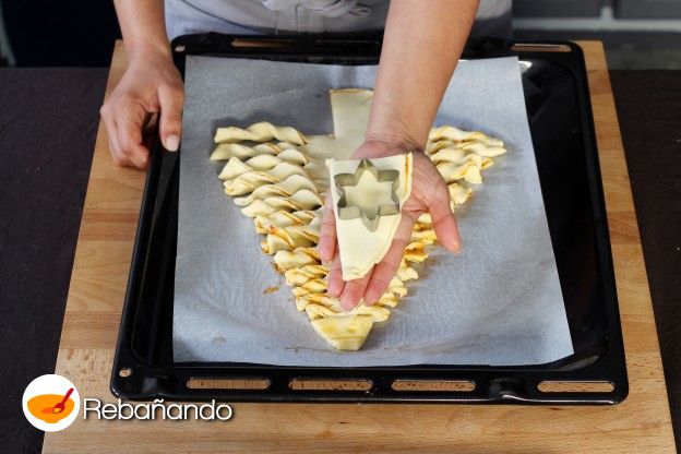 ÁRBOL DE NAVIDAD de hojaldre perfecto para el entrante DeCarlos L.J, 08/12/2015 Rebañando 2460 compartidos Compartir en Facebook Twitear Pin it Share on WhatsApp Compartir 10/14 Vista previa Siguiente 8. Hacemos la estrella Con los bordes que nos han sobrado haremos la estrella del abeto. Podemos hacerla a mano o ayudándonos con un molde de repostería.