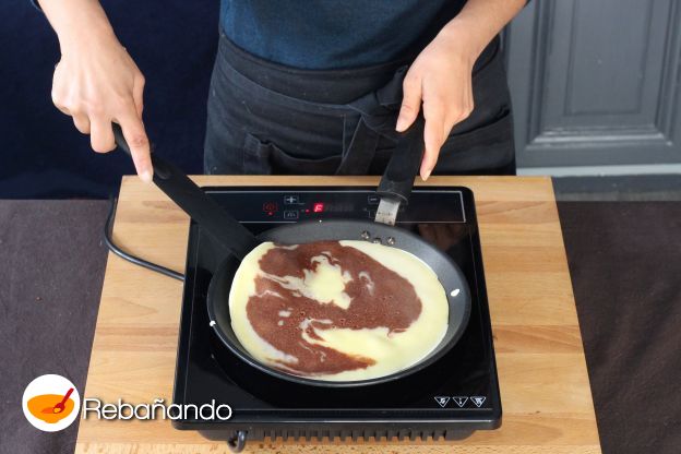 Da la vuelta al crêpe  para que se haga bien por las dos caras.