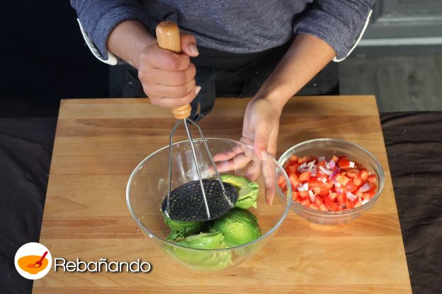 Pela los aguacates y tritura la pulpa para hacer un puré.
