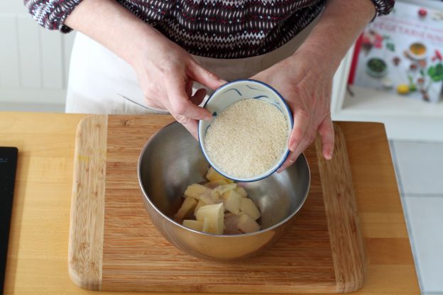 Echa la mantequilla en trocitos en un bol o cuenco grande. Añade el azúcar.