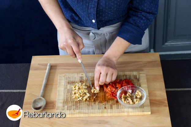 Baguette de queso y pimientos ¡de infarto! DeAndreína Gil, 08/02/2016 Rebañando 5299 compartidos Compartir en Facebook Twitear Pin it Share on WhatsApp Compartir 4/15 Vista previa Siguiente © Silvia Santucci Preparar el relleno II Corte también las nueces en trozos grandes.