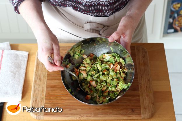En un tazón, mezcla el pollo, el aguacate sazonado con limón y la lechuga. Agrégale sal al gusto.
