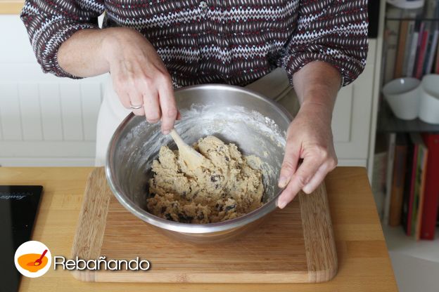 Con una cuchara de madera o con las manos, mezcla hasta que no se vea la harina.