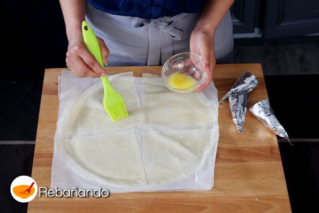 Embadurna cada triángulo con la mantequilla derretida.