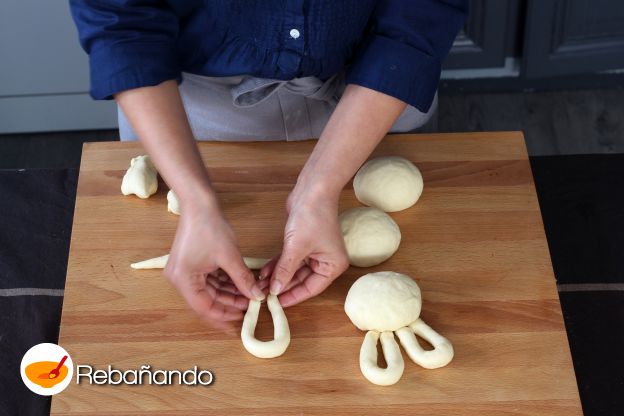 Forma las orejas doblando las tiras de masa.