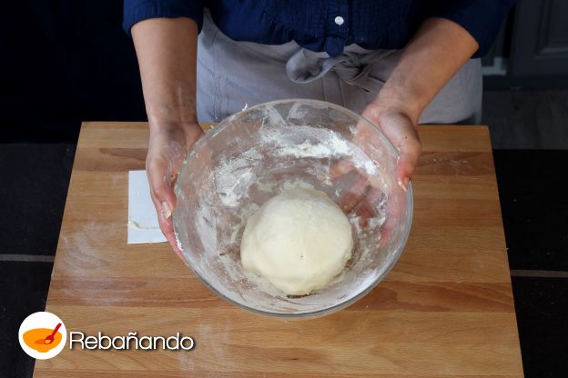 4. Cuando la masa esté lista, espolvorea con harina y trabájala con las manos. Si está suave y elástica, es momento de amasar con un rodillo sobre tu plancha de trabajo.