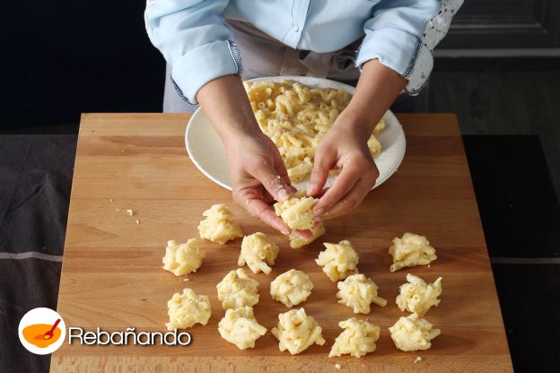Haz pequeñas porciones con los macarrones fríos y refrigéralos por 30 minutos más.
