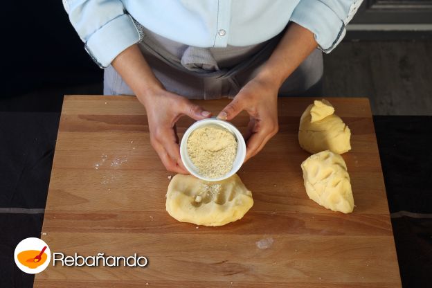 Agrega el polvo de almendras a la bola más grande y mezcla.