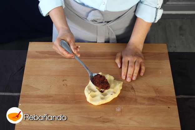 En la otra bola de 160 g, incorpora 1 cucharadita.