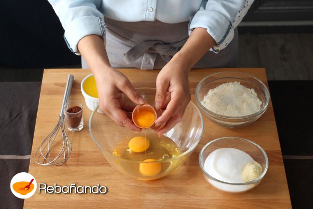 Para empezar, rompe los huevos, colócalos en un bol y añade el azúcar.