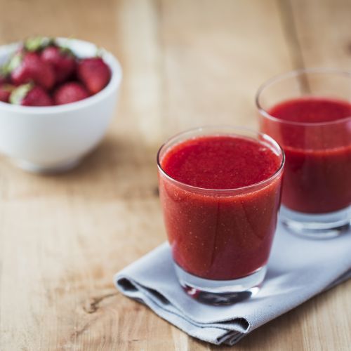 Los smoothies son un batido hecho a partir de ingredientes frescos y naturales. Si quieres consumir más vitaminas, haz un smoothie de fresas, mezclándolas con yogur, leche y un poco de miel en una batidora. Después, sirve tu smoothie en un vaso y disfrútalo.