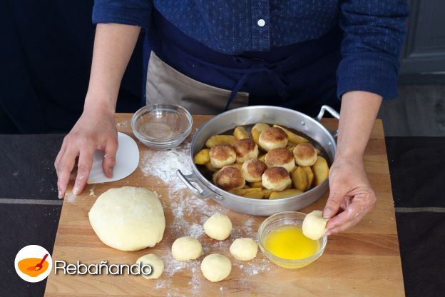 Mojar cada bolita de brioche en manteca derretida.