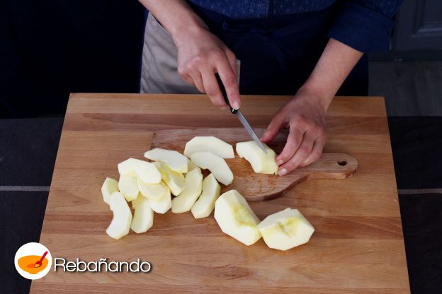 Pelar las manzanas y cortarlas en gajos.