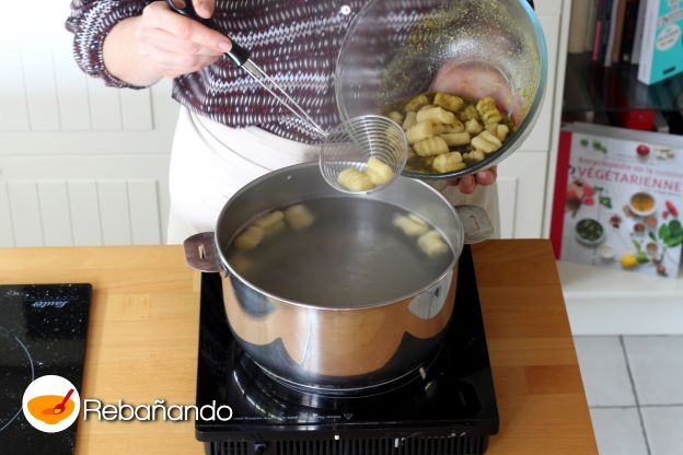 Vamos echando los gnocchis poco a poco. Sabremos que están hechos en cuanto suban a la superficie y floten.