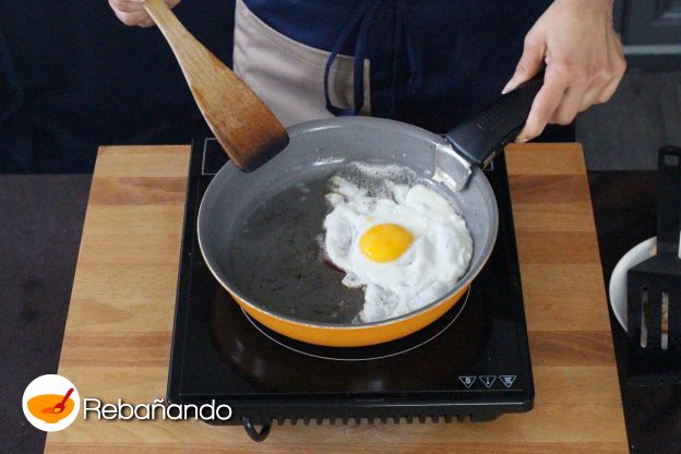 Fríe los 4 huevos y resérvalos cerca del calor.