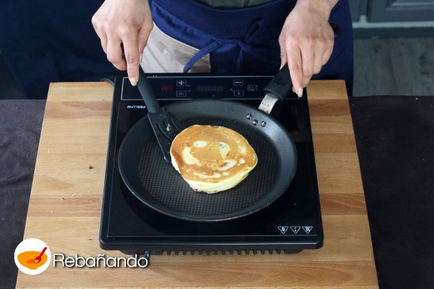 Seguimos haciendo el crepe a fuego medio y le damos la vuelta hasta que esté dorado por ambos lados. Repetimos el proceso hasta acabar con la masa.