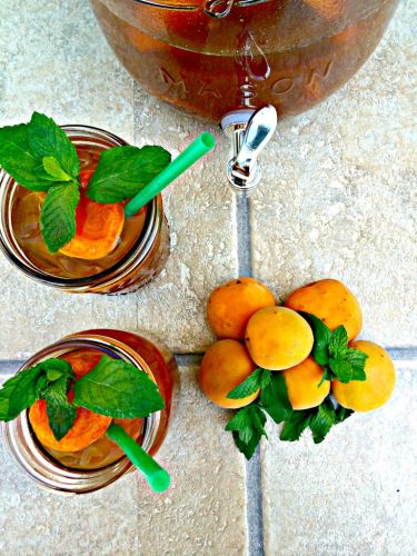 La base debe ser té negro helado bien preparado, añade trocitos de albaricoque, una cucharada de vainilla en polvo y deja reposar en la nevera al menos 1 hora.