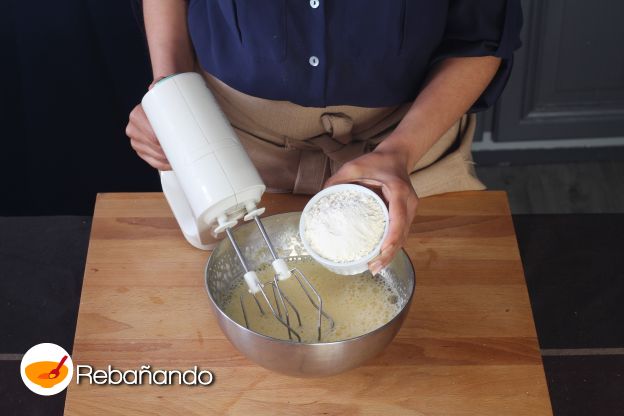 Agrega la harina cernida y mezcla delicadamente con una espátula.