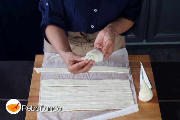 Fija bien la masa en la punta del cono para que quede sellada y repite la operación con cada cono de carton forrado.