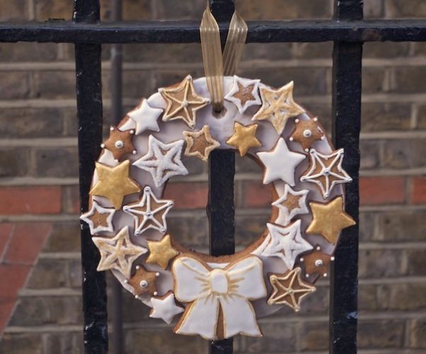 Esta simpática idea no te la puedes perder: una corona navideña que puedes colgar en la puerta de la casa... ¡y que está hecha de galletas!