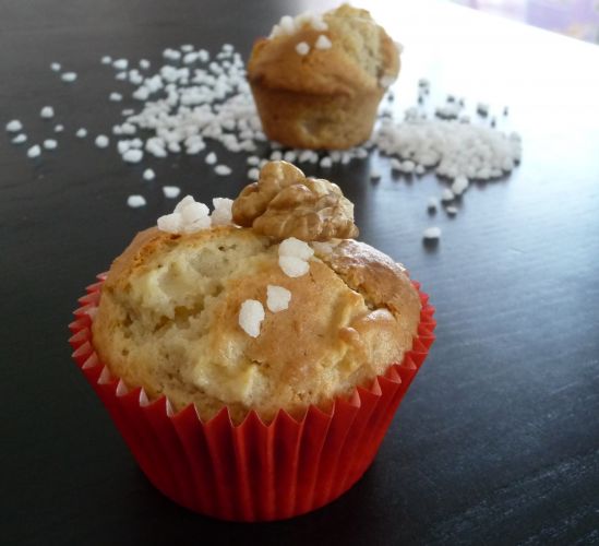 Prepara una masa tradicional de muffins agregando 1 taza de puré de manzana. Hornea y decora con granos gruesos de azúcar.
