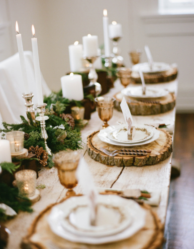 Dale un ambiente rústicamente navideño a tu mesa. Esta opción es perfecta si eres de esas personas que adora la naturaleza y... ¡casa a las mil maravillas con una blanca Navidad!