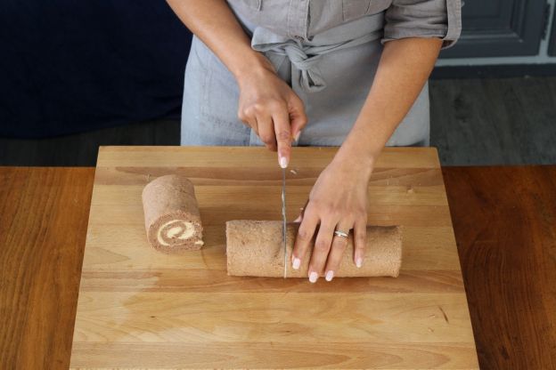 Ahora que el bizcocho y la crema se han enfriado, puedes armar el rollo. Extiende el bizcocho y úntalo con la crema de limón. Toma uno de los extremos y comienza a enrollar firmemente pero cuidando que no se rompa. Para refrigerarlo, puedes guardarlo completo o cortarlo en porciones más pequeñas. Antes de servir espolvorea con azúcar glas y coloca unas ramitas de romero fresco por encima.