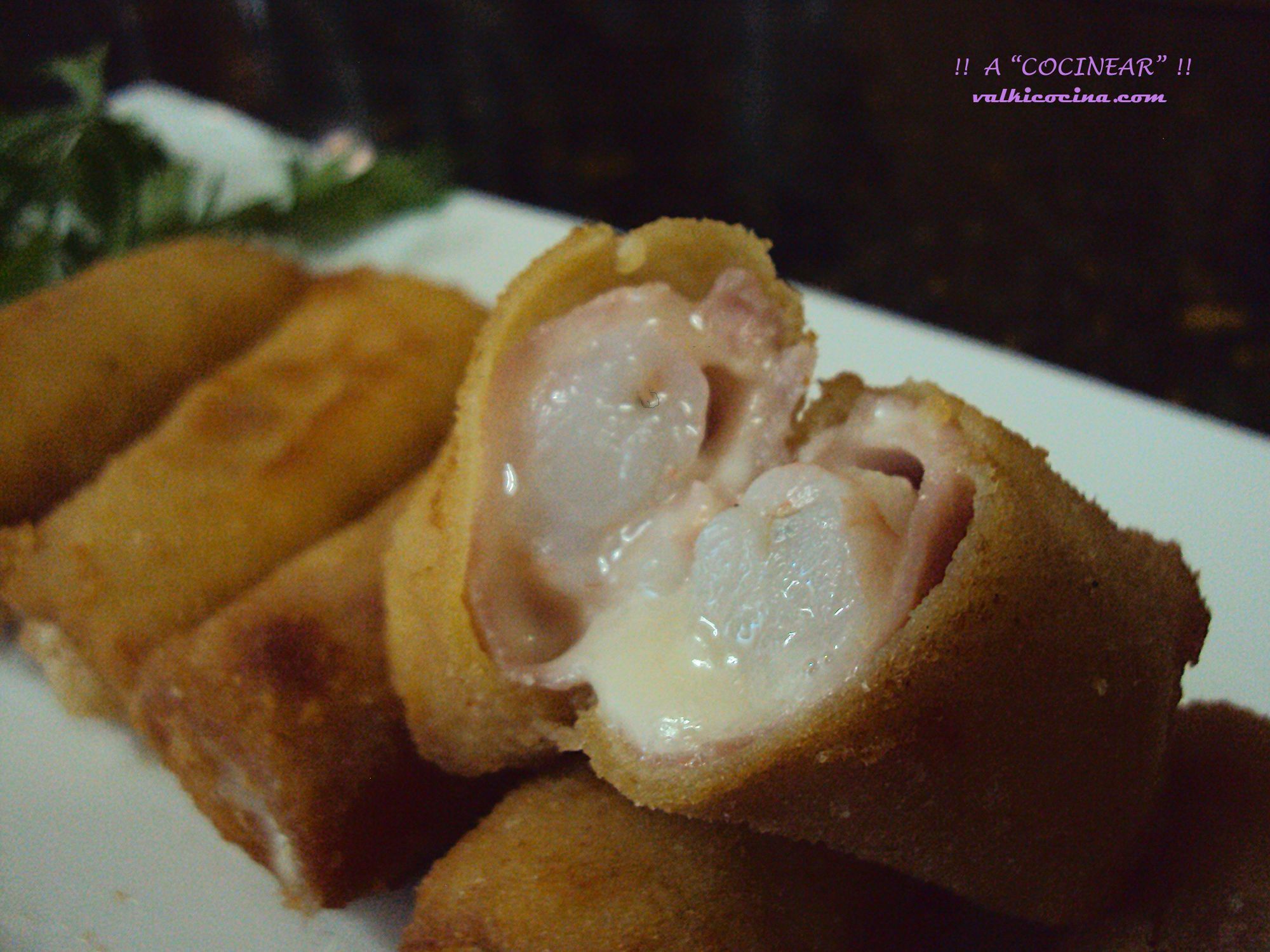 Irresistibles estos "bocaditos" de jamón cocido, queso y gambas