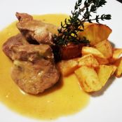 Carrilleras ibéricas a la vainilla con patatas y piña