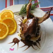 Codornices rellenas con salsa de chocolate