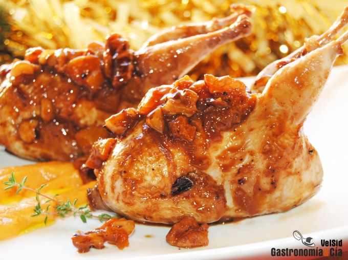 Codornices rellenas de foie con frutos secos
