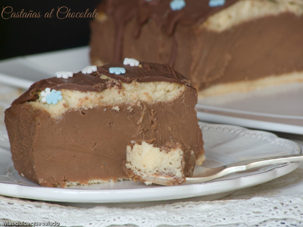 Cremosa tarta de castañas con chocolate y cubierto de chocolate negro