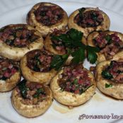 Lavamos los champiñones y quitamos el centro y picamos pequeñito el centro del champiñon,lo demás reservamos