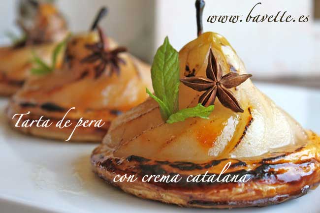 Un hojaldre crujiente con crema catalana y pera caramelizada, increiblemente bueno