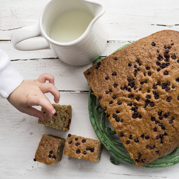 Bizcocho con arándanos rojos y lino triturado y tostado (sin gluten)