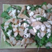 Ensalada de rúculas, queso azul y peras grilladas