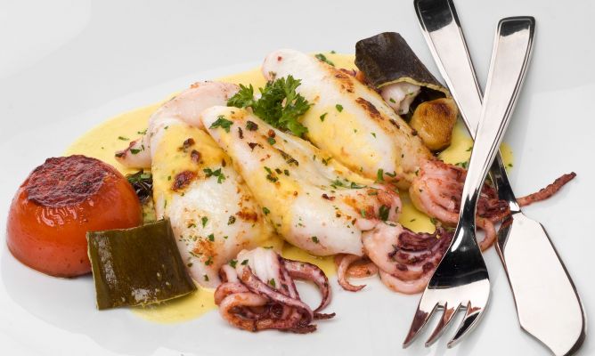 Limpia los chipirones y pon los cuerpos y los tentáculos en un bol
