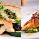 Carne de cerdo rellena de espinacas, pimientos y feta