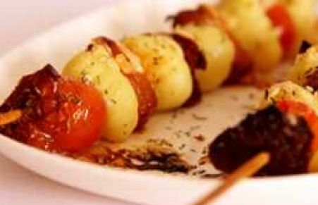 Brocheta ñoquis con dos tomates
