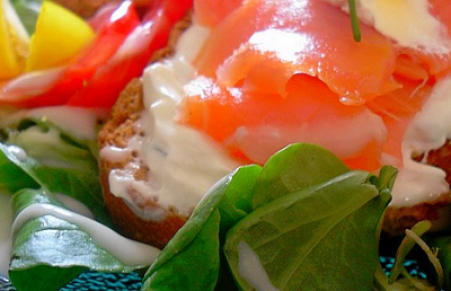 Busca todas las fotos que hemos recibido para esta receta de Bruschetta con salmón ahumado, queso crema y puré.