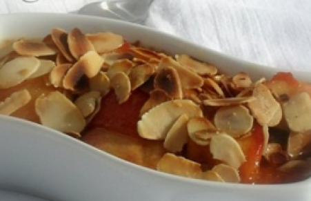 Busca todas las fotos que hemos recibido para esta receta de Gratinado melocotones albaricoques, albahaca y almendras.