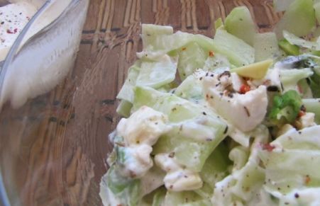 Ensalada de pepino, aguacate, queso feta y salsa Philadelphia