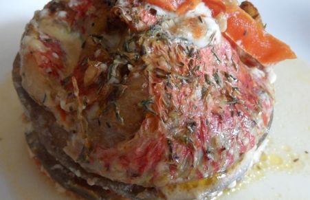 Busca todas las fotos que hemos recibido para esta receta de Rodajas de tomate y berenjenas con salmonete.