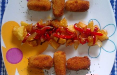 Croquetas de atún al toque de mango con papas caramelizadas