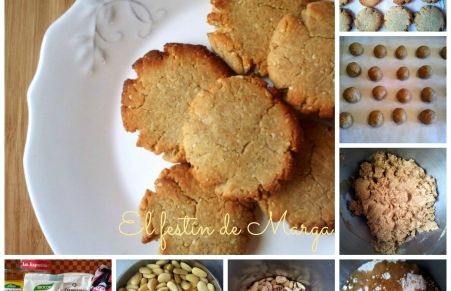 En el blog de David Lebovitz, al que llegué por casualidad hace unas semanas, vi unas galletas de tahini y almendras. Son una receta israelí. Hice bastantes cambios para que no llevaran ni azúcar, ni mantequilla ni harina blanca de trigo.