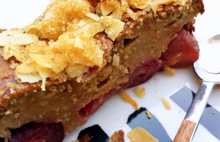 Busca todas las fotos que hemos recibido para esta receta de "Clafoutis" de gofio con cerezas y almendras.