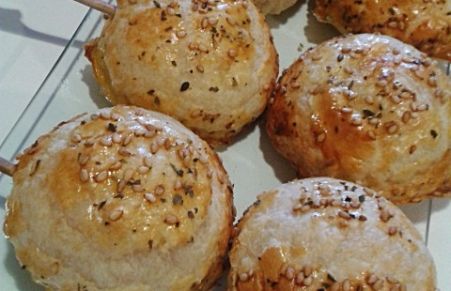Piruletas de hojaldre rellenas de chorizo a la sidra